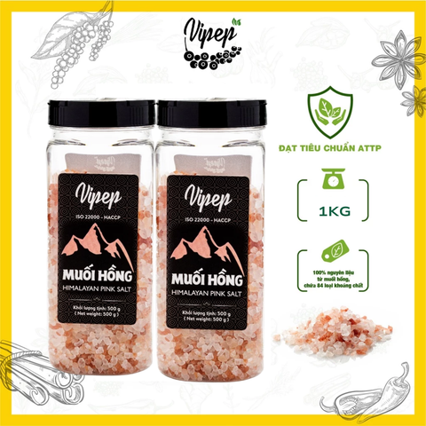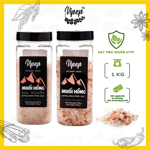 Bộ 01kg Muối Hồng Himalaya xay nhuyễn Gia vị Vipep làm gia vị nấu ăn, pha chế thức uống, chăm sóc da, thải độc ngâm chân