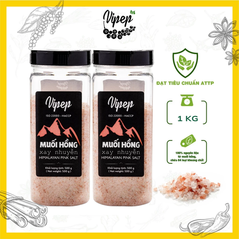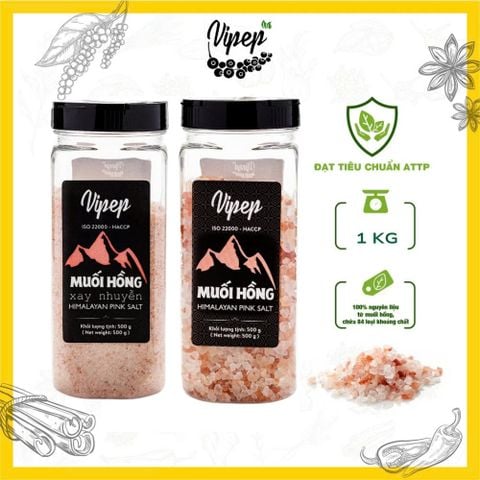 Combo Muối Hồng Hymalaya Vipep muối mỏ nhiều khoáng chất, làm gia vị nấu ăn, pha chế thức uống, chăm sóc cơ thể thải độc ngâm chân, xông hơi - Gia vị Vipep
