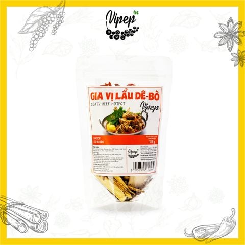 Gia Vị Nấu Lẩu Dê - Bò Tự Nhiên gồm hỗn hợp những gia vị quen thuộc của người Việt Nam được chế biến theo công thức độc quyền của Vipep, chắc chắn sẽ đem đến sự hài lòng cho người thưởng thức.