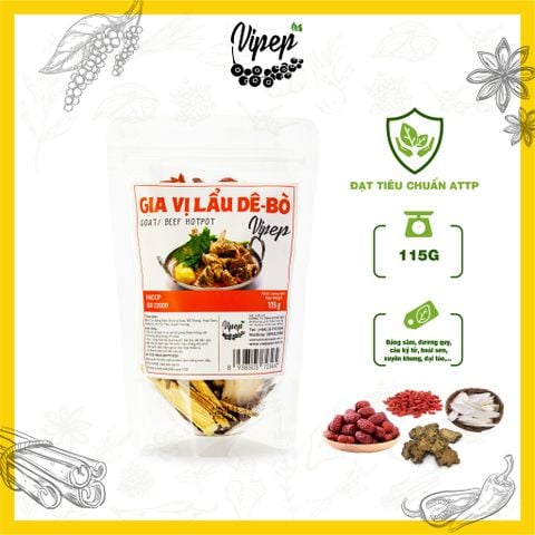 Set 5 Gói Gia Vị Nấu Lẩu Dê - Bò Tự Nhiên Vipep 115g