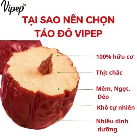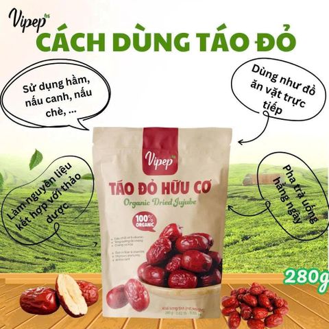 Táo Đỏ Hữu Cơ Vipep, Táo đỏ Tân Cương Túi 280g, dùng hầm, nấu, chế biến món ăn - Gia vị Vipep